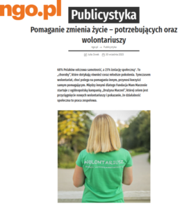 68% Polaków odczuwa samotność, a 23% izolację społeczną¹. Z kolei stres został ogłoszony przez WHO epidemią XXI w. To „choroby”, które dotykają również coraz młodsze pokolenia. Tymczasem wolontariat, choć polega na pomaganiu innym, przynosi korzyści samym pomagającym. Dla wszystkich, którzy chcą pożytecznie zagospodarować swój czas i zyskać nowe doświadczenia, wolontariaty stają się m.in. przestrzenią do spełniania marzeń dzieci i… własnych. Między innymi dlatego Fundacja Mam Marzenie startuje z ogólnopolską kampanią „Drużyna Marzeń”, której celem jest przyciągnięcie nowych wolontariuszy i pokazanie, że działalność społeczna to praca zespołowa. Wolontariusze mogą angażować się zarówno w zadania kompetencyjne – grafika, informatyka, organizacja wydarzeń, jak i w tradycyjny wolontariat, wspierając dzieci przy spełnianiu ich marzeń.