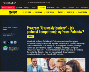 Jak wynika z danych Eurostatu, na każdego specjalistę/specjalistkę IT przypada 15 osób bez podstawowych umiejętności cyfrowych. Grupa uczennic z Kowala w kujawsko-pomorskim znalazła rozwiązanie. Zapewniły m.in. seniorom i osobom z niepełnosprawnością szkolenia technologiczne oraz wsparcie online. Projekt „Jak nie teraz, to kiedy?”, stworzony w ramach praktycznej olimpiady Zwolnieni z Teorii, miał na celu pomóc uczestnikom lepiej odnaleźć się w cyfrowym świecie i aktywnie z niego korzystać. W tym projekcie zadaniem zespołu agencji było wypromowanie programu „UsuwaMY bariery!”, który miał na celu wsparcie uczniów w realizacji projektów dotyczących inkluzywności cyfrowej. W ramach realizacji działań media relations pozyskaliśmy publikacje w wysoko zasięgowych mediach takich jak m.in. Polskie Radio 24, Polskie Radio Program 4, TOK FM.